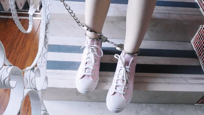 妹子在等朋友回来,劫匪却偷偷闯入,把她弄到台阶上,手锁在栏杆里,脚镣拴住一只脚,戴上脚铐,脱下鞋,戴上脚趾铐,挠脚心。挠了一会,解开脚趾铐,脱下袜子,再锁上,并把脚趾和脚腕连起来,继续挠。又挠了一会,劫匪把妹子抱起来,躺在床上,继续挠脚心。劫匪把妹子弄趴下,继续挠脚心,直到妹子说出密码,劫匪扔下妹子离去。