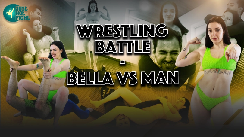Bella vs. Man wrestling match. In the fight they use throws, painful and choking holds.