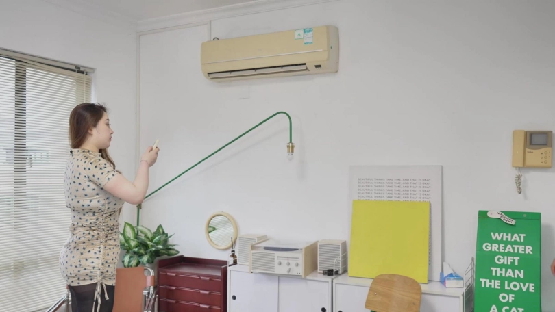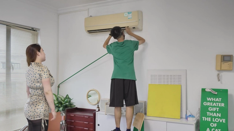 震惊!富婆勾引修空调的师傅,师傅不胜其烦,直接用修空调的扎带把她绑了起来,然后继续工作。