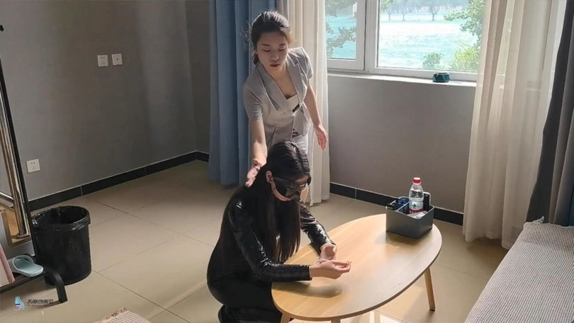 场景4:宫怡被绑(驷马) 在桌子上。她被一个红色的球堵住了嘴。她醒来时呻吟着,有点挣扎。青柠走过去说:“终于醒了?我会让你后悔当初抢了我。”。宫怡呻吟着,看起来很害怕,试图说“不,请……帮帮我!!”并乞求。青柠慢慢脱下高跟鞋,穿着长筒袜挠着脚。宫怡试图说:“住手!!不!!求你了!”但她只能说:“嗯!”挠了一会儿,青柠脱下了宫怡的袜子说:“这些偷窃一定让你的脚出汗了。你喜欢自己脚的味道吗?”她把袜子捆起来,强迫巩义闻自己的袜子。她还把巩义的鞋子放在鼻子上,强迫她闻一闻。巩义呻吟着。