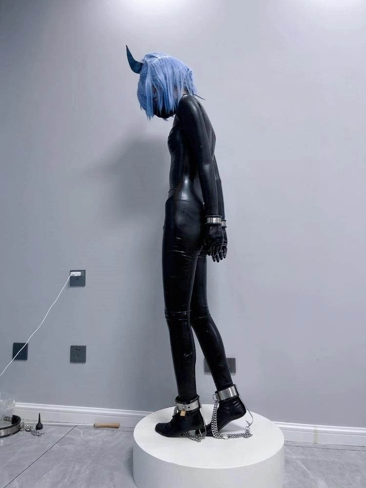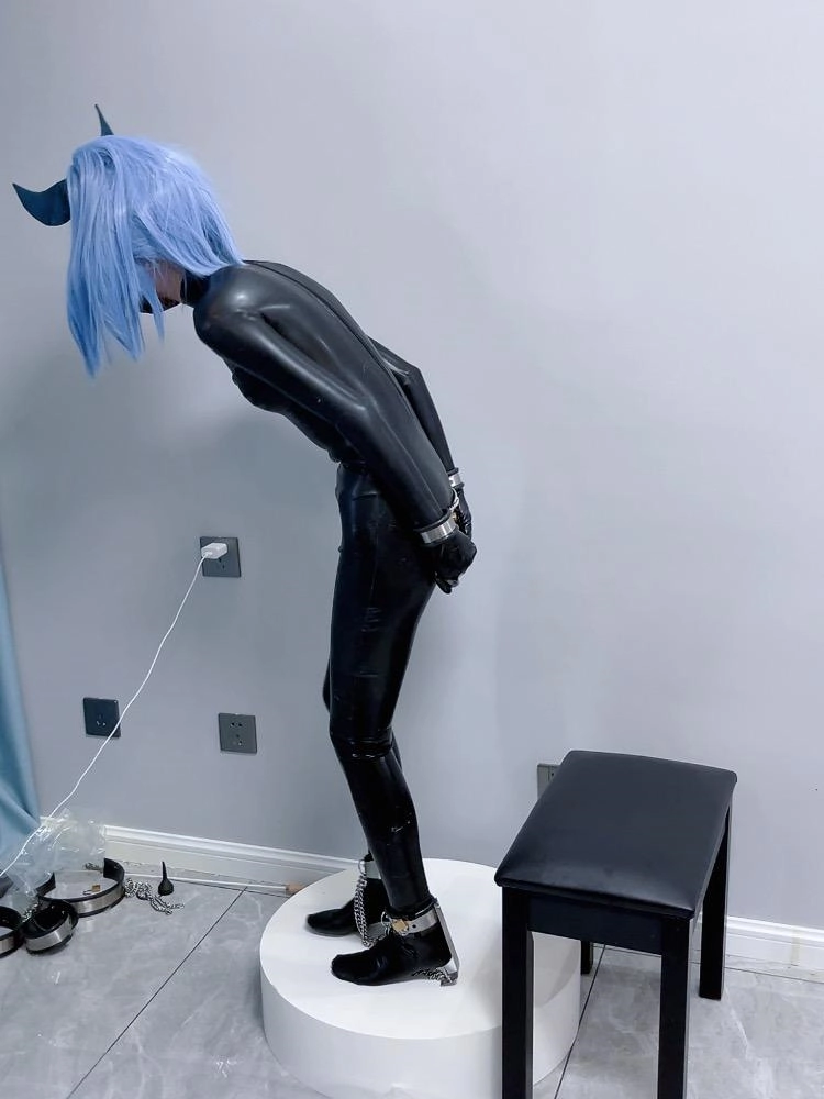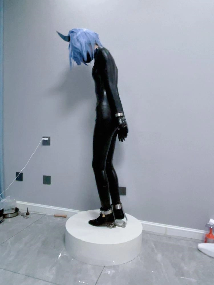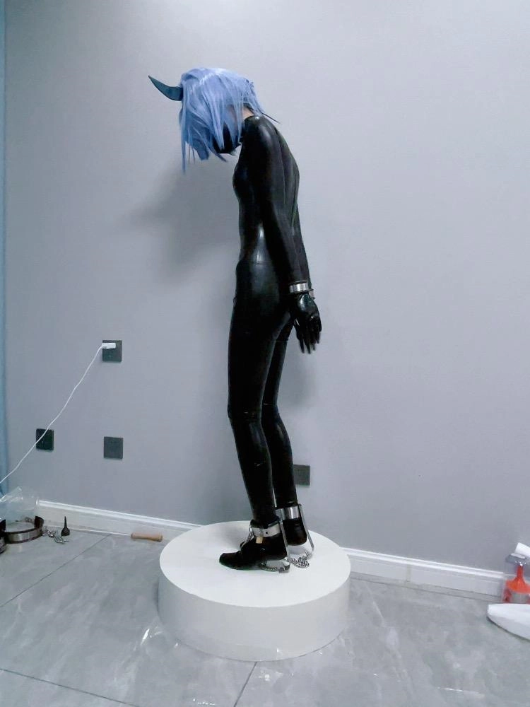 可怜的魔法少女就这样穿上羞耻的胶衣,双手被反铐在身后,艰难的维持着平衡。最要命的是脚底的尖刺镣铐,只要稍微维持不了平衡冰冷的尖刺就会狠狠刺痛脚底。这可是真正的刑具,一刺下去不受伤是不可能的。少女只能羞耻的站在收藏用的手办台上,被冰冷的刑具强制接受踮脚的惩罚,疯狂的压榨着少女的体力.....
