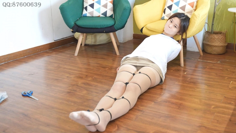 还是那个娇小可爱的妹纸,挺调皮的,被扎带绑了后,用胶布封好嘴,还能口腔鼓气把胶布弄出个口子呼吸。