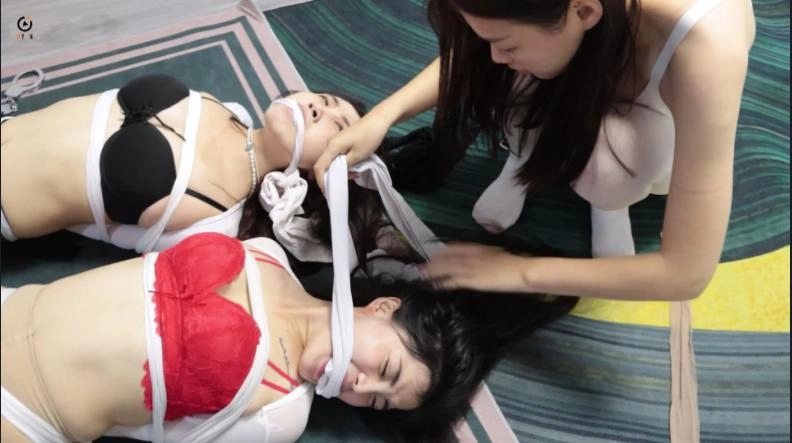 小妤是某家绳艺工作室的新模特,为了能独占工作室的订单,她绑架了自己的同事恩可和晴雨,用白色的丝袜将她们五花大绑,还给她们戴上了双人塞口球,强迫她们保持着一个非常羞耻的姿势。将恩可和晴雨玩弄了一阵后,小妤给她们取掉了双人塞口球,重新用丝袜封住了她们的嘴巴,将她们固定成驷马倒攒蹄的姿势又玩弄了一阵。但初出茅庐的小妤显然低估了这些从年多年的绳模姐姐们,趁着她离开的时候,恩可成功的挣脱了束缚,袭击了小妤,一轮新的玩弄即将开始。