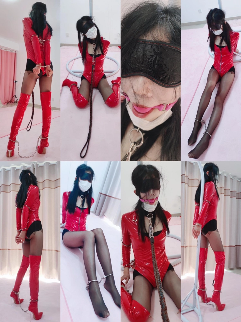 › 【素人】178气质长腿小姐姐小艺穿性感125公分过膝长靴黑丝+性感连体胶衣带口球镣铐体验