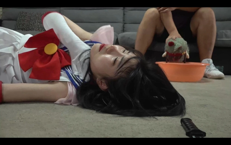 吴晗化身女超人前往捉拿坏人,没想到被坏蛋使用妖术,将一个玩具娃娃和吴晗绑定,只要坏人折磨玩具娃娃的一个部位,吴晗也会承受相应的痛苦......最终吴晗受尽折磨昏迷过去,被坏人抱去洗澡,这下香喷喷的吴晗彻底沦为了坏人的玩具......涉及元素有cosplay、恋足、昏迷、摆弄、翻白眼等