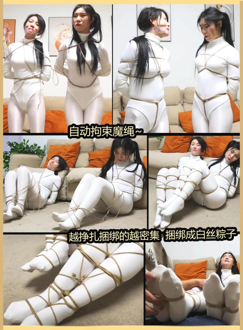 查看完整版本: 【逍遥】《鬼屋缚影——自动拘束魔绳》刘洋 吴晗性感油光白丝美女 自己捆绑的魔绳 越挣扎捆绑越紧 超严密捆绑白丝人粽