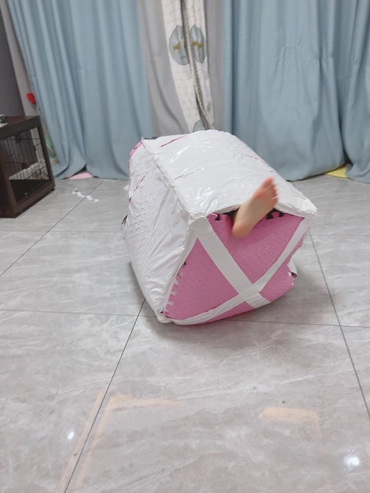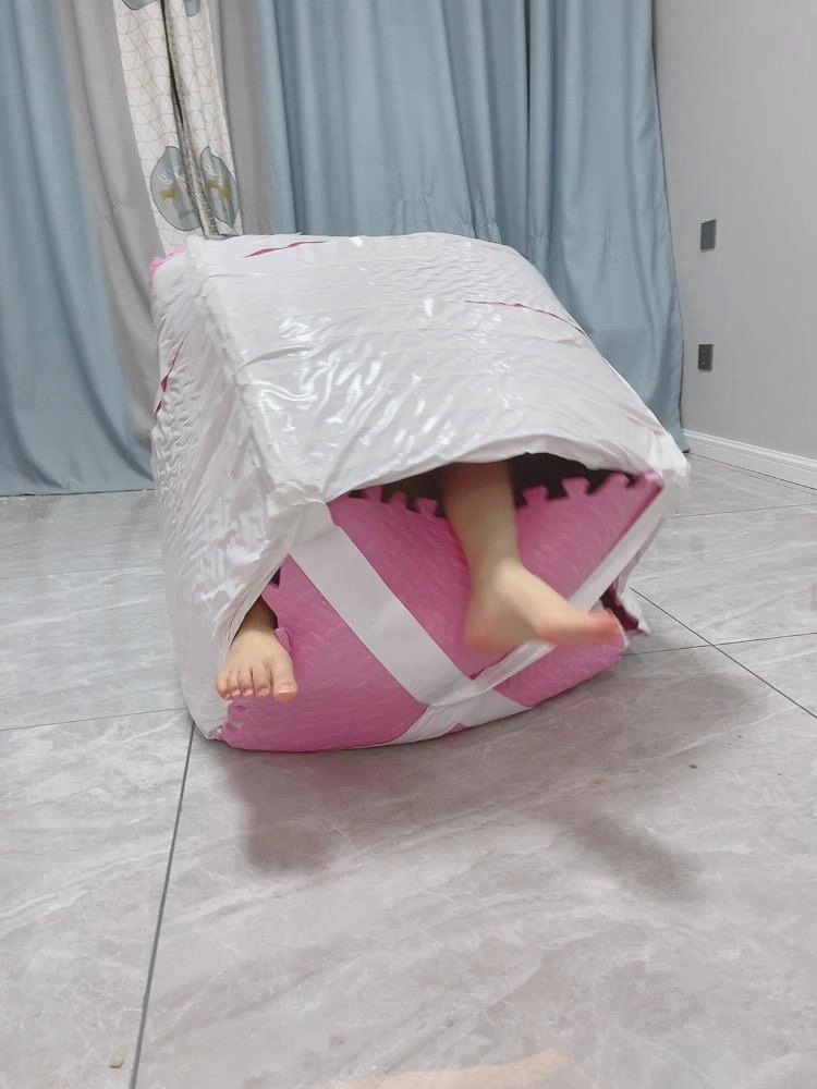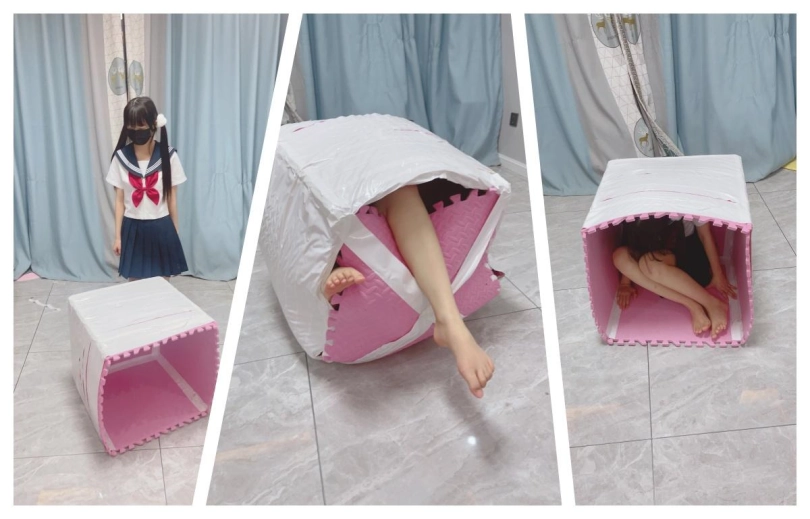 装箱脱出挑战又来啦!这次为了增加观赏性和互动性,选择了6块60厘米长的正方形软胶板,韧性更强,可以更直观的看出挣扎时凸出来的形状。