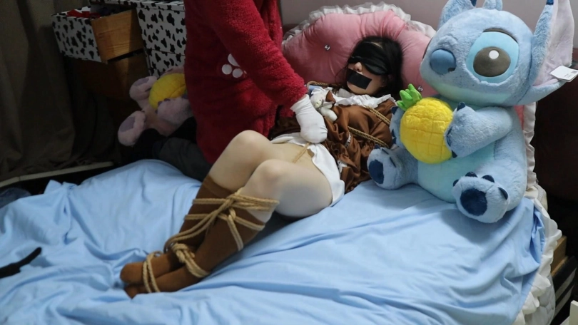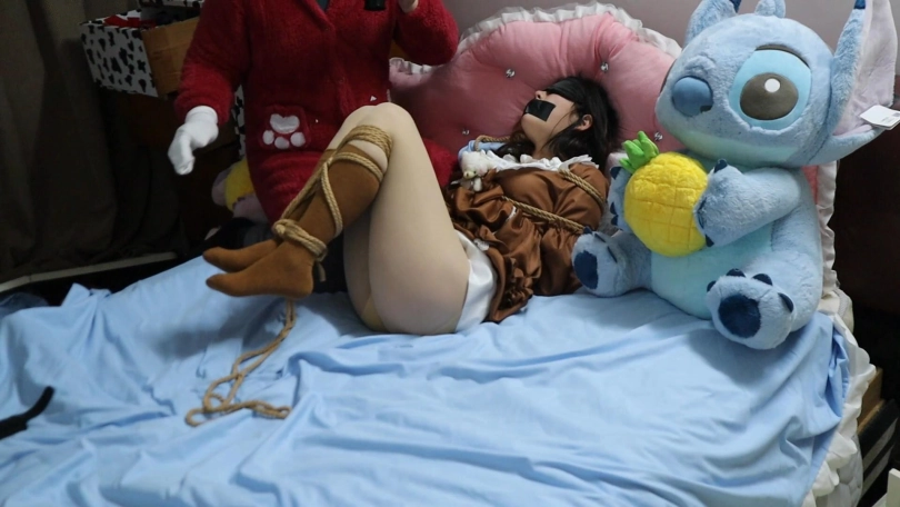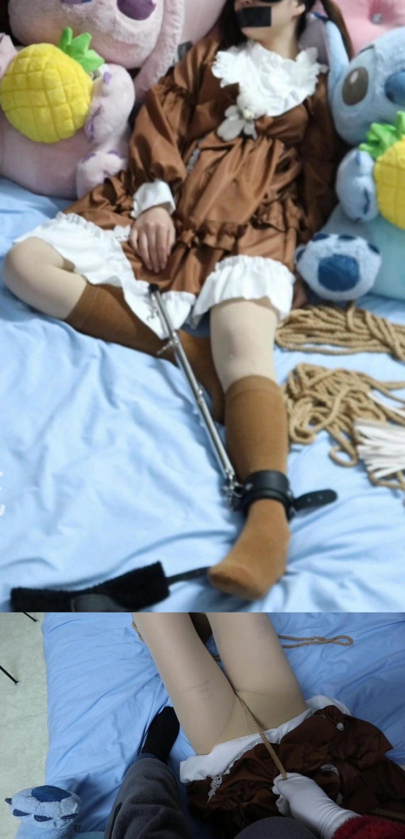 ,狠勒股绳子+扇脸+踩踏+蒙鼻+鞭打+拿棒子锤+tk 铐撩绑完绳子继续绑,