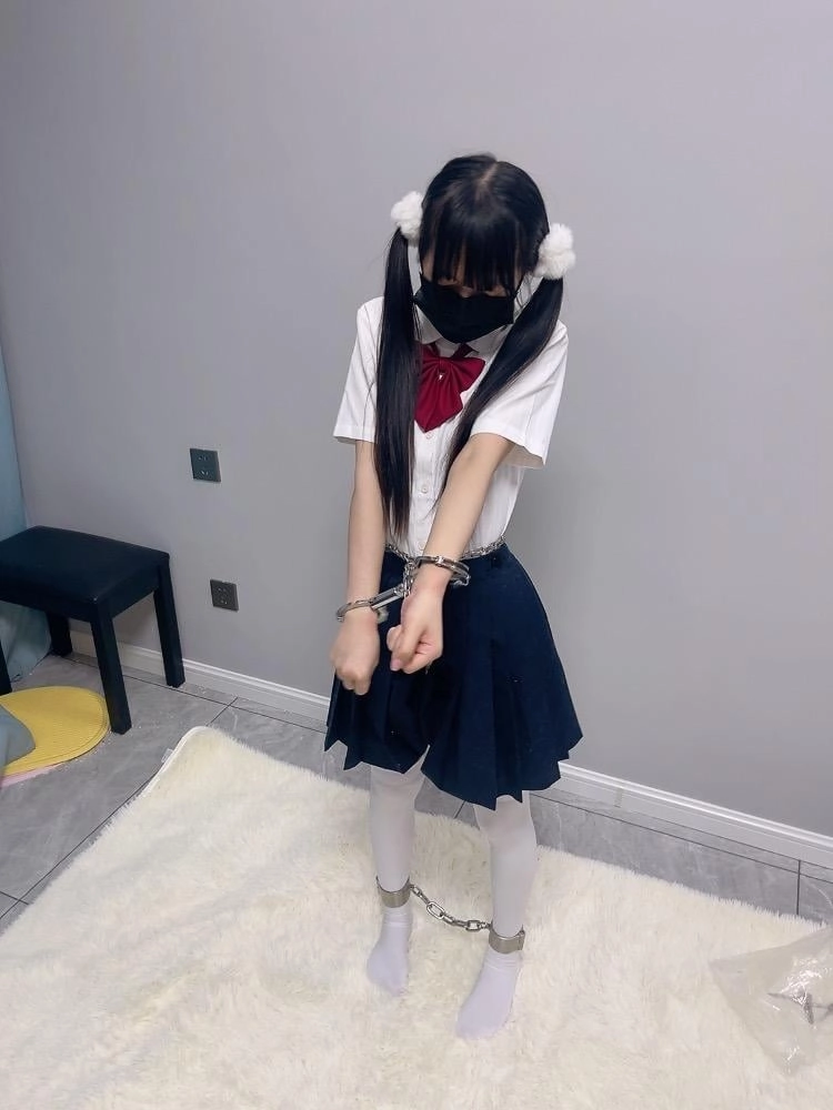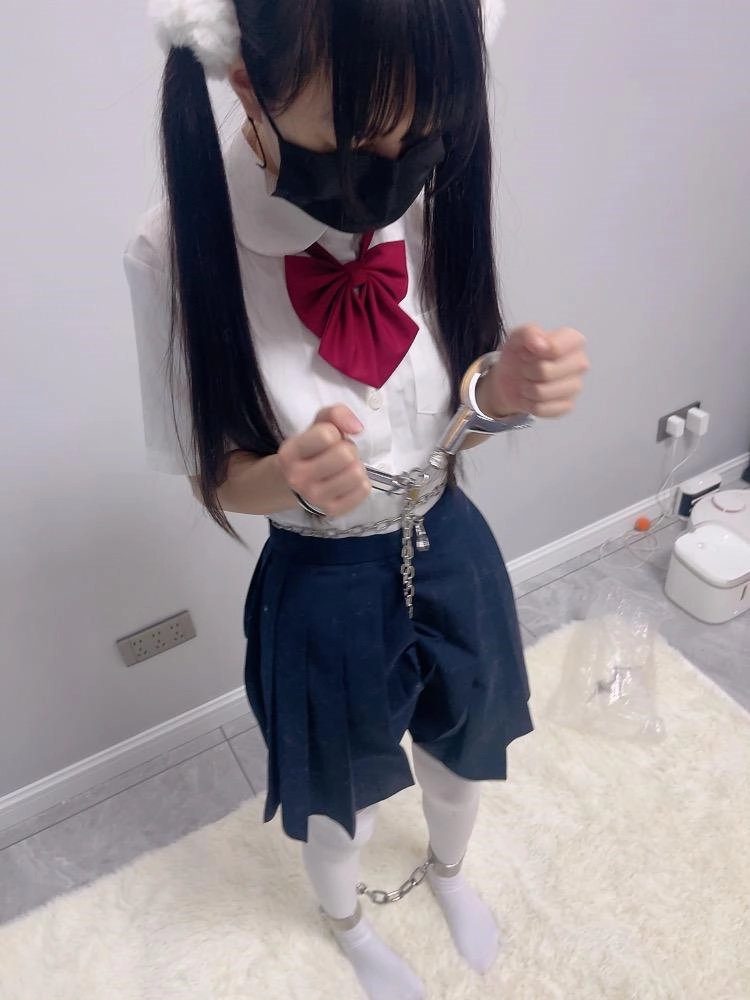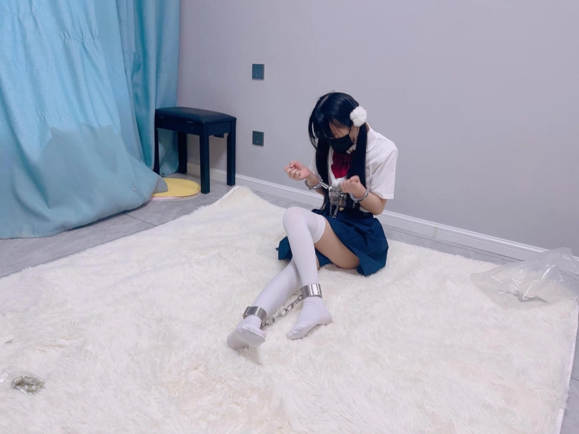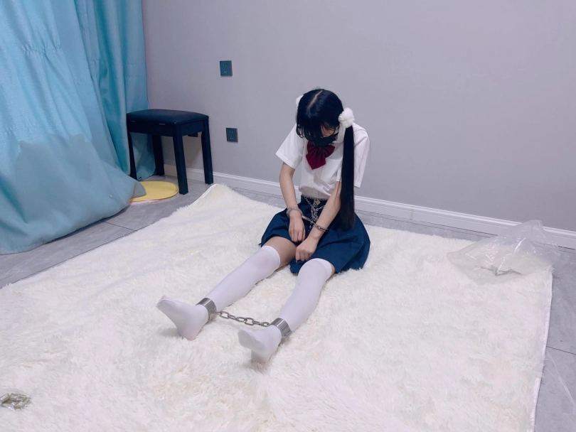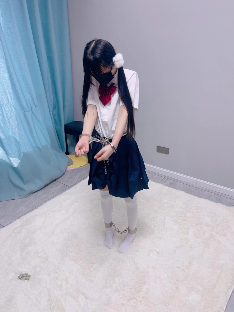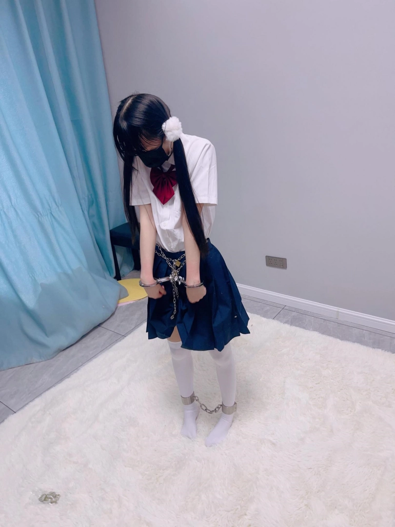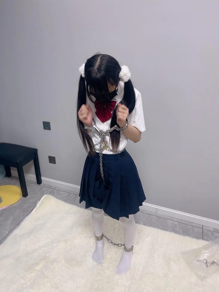 jk白丝双马尾,镣铐是严丝合缝紧贴皮肤的不锈钢脚镣,手铐是筒铐。