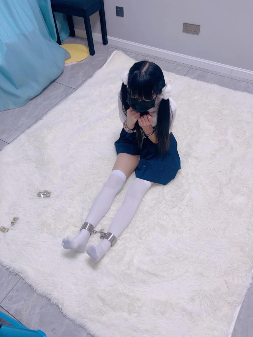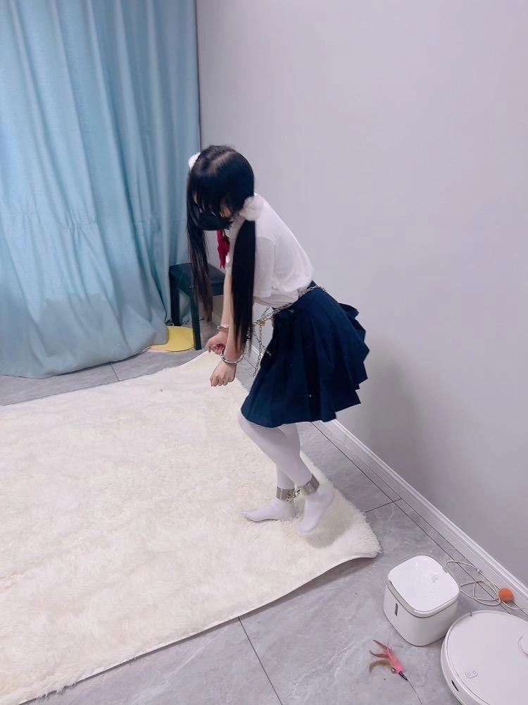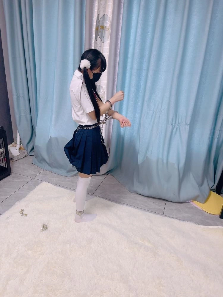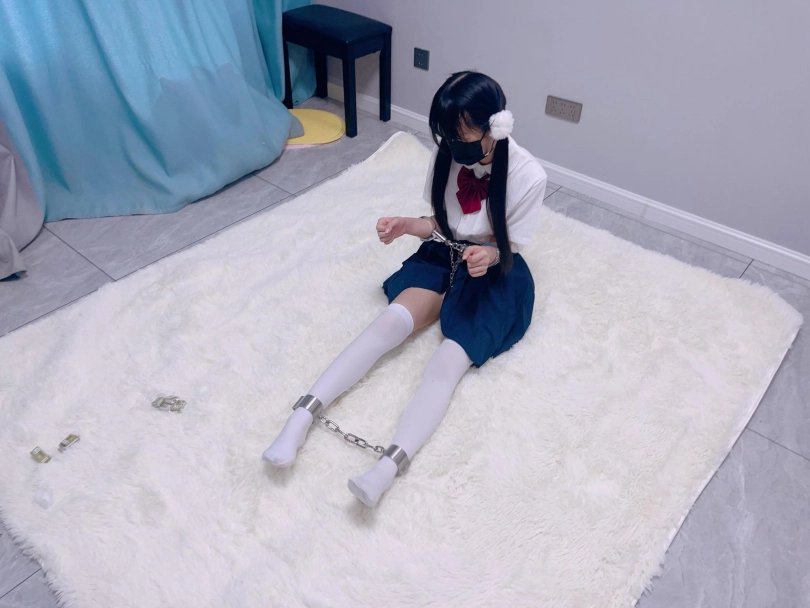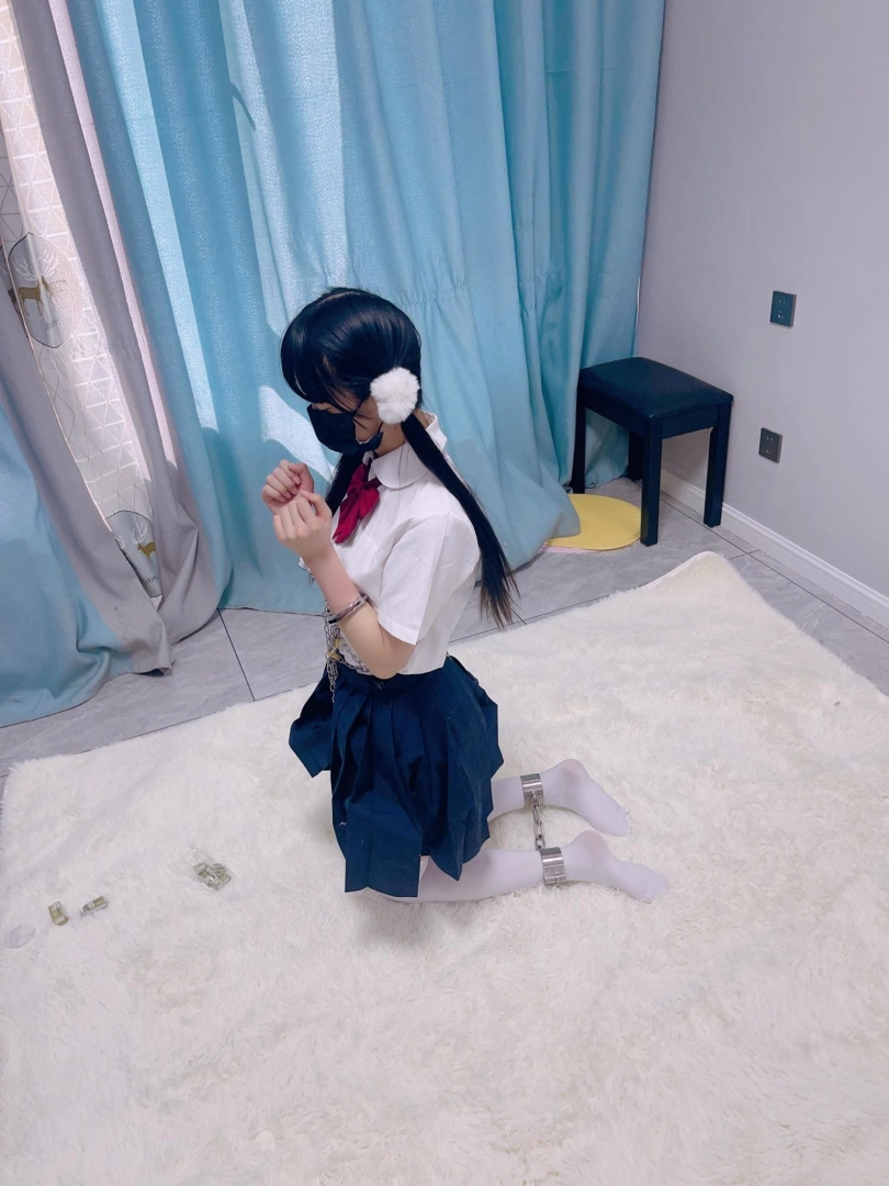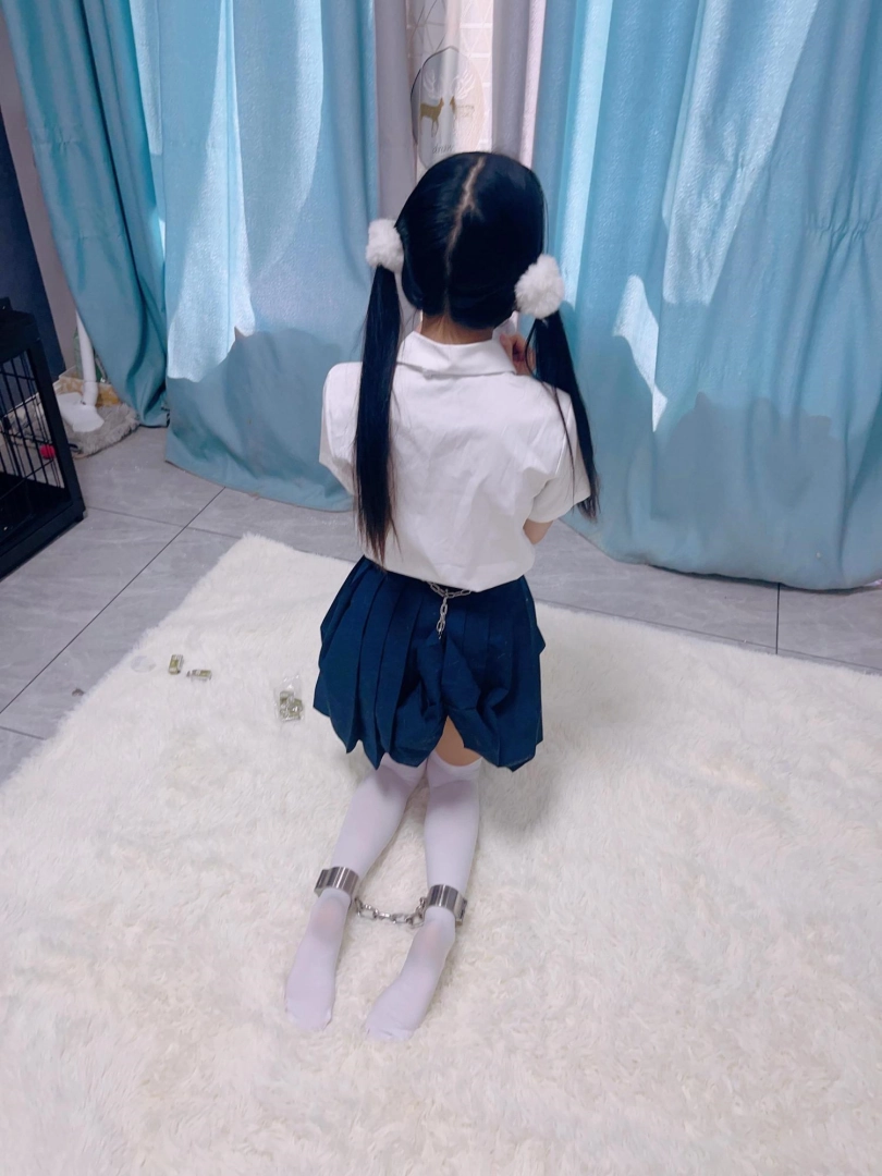 jk白丝双马尾,镣铐是严丝合缝紧贴皮肤的不锈钢脚镣,手铐是筒铐。