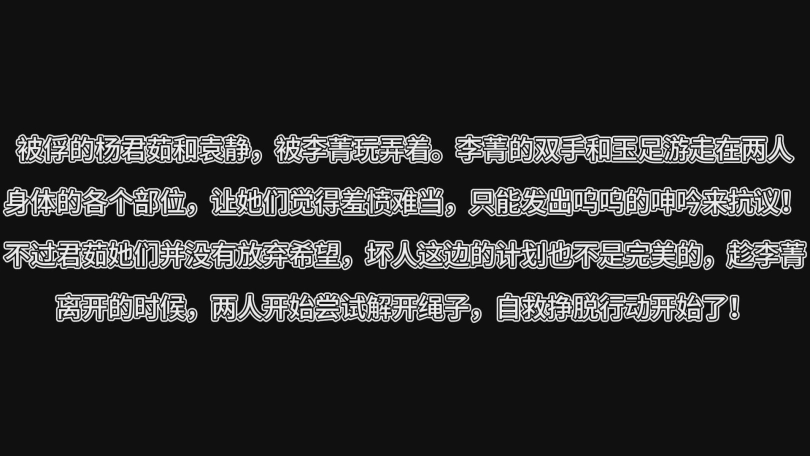 被俘的杨君茹和袁静,被李菁玩弄着。李菁的双手和玉足游走在两人
