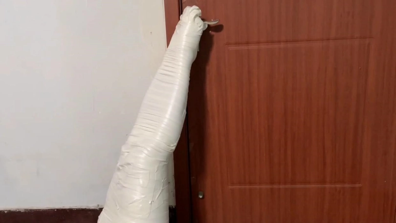 吴晗一番挣扎蠕动,来到了卧室大门前,发现果然没法打开大门,她绝望的呜呜呻吟。