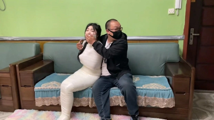 然后2个人在沙发上。小偷一边家中房主和外卖聊天一边控制着蠕动的吴晗。