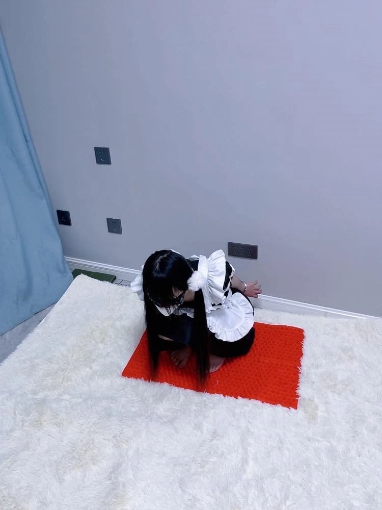 【指压板体罚(罚站+深蹲)】:然后扶着茶茶命令茶茶戴着十斤重镣站在指压板上,逼迫茶茶罚站。茶茶的小脚丫一踩上指压板就疼的几乎站不稳了,缓了好久才维持住平衡。超级痛的指压板狠狠钻着茶茶白嫩的脚心,本来粉红色的脚底和脚趾都因为指压板压力的疼痛变得微微泛白。茶茶的足底在离开指压板后又以惊人的速度肉眼可见的变得红彤彤的。在指压板上进入罚站待机状态,可以动但是不可以大幅度动(反正越动越痛),不可以离开指压板,偶尔下达转身、蹲下之类的命令必须立即执行。随着时间推移茶茶逐渐崩溃,但是在严厉多层堵嘴的情况下声音只被压在喉咙里,想哭都哭不出来。