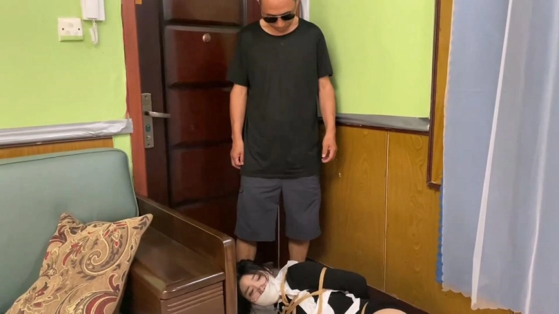 美女吓的想逃跑。她试着用丝袜脚趾解开腿部绳子发现没有,想用手发现够不着腿部的绳结。她只能放弃解缚,决定先爬出去。