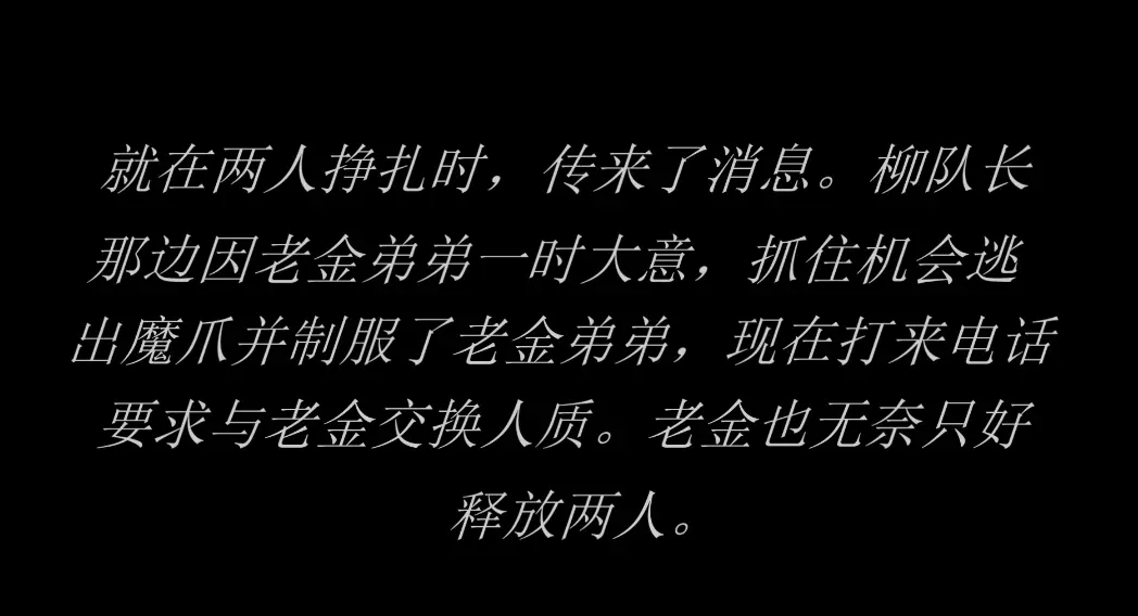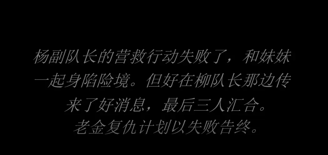 老金再次被释放后,开始计划了新的报复行动。与弟弟成功地计划并实施,不仅抓住了柳队长姐妹,还破获了救兵前来的消息。老金弟弟为了杨副队长的“到访”决定将柳队长与妹妹分开,为杨副队长精心设置了陷阱。杨副队长的营救又会有什么意想不到的遭遇......