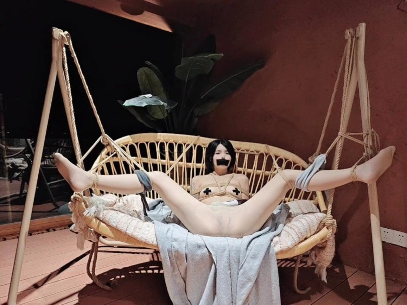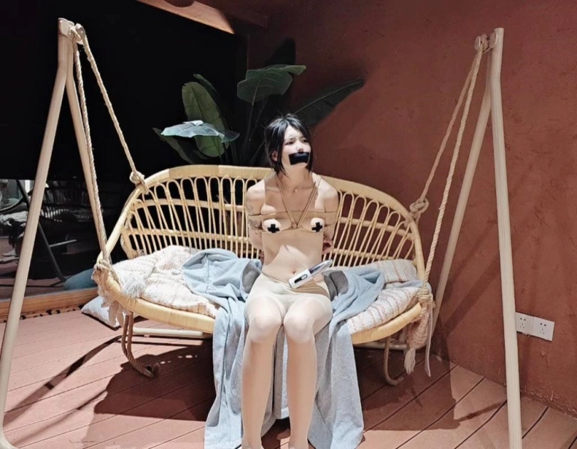 足jiao完过后,接下来被测底固定在了秋千上,这个姿势真的毫无动弹的余地,随着玩具的[X_X]加上绳子固定,知道这下又要完了,旁边依然还有不停路过的人,放开关打开的那一刻,再也控制不住了,试图把所有的声音和受不了转换成口水,最终都是无济于事,不知过了多久,接近昏迷的时候,被解下来拖到了露台的最外面,羞耻的事情又要开始了。