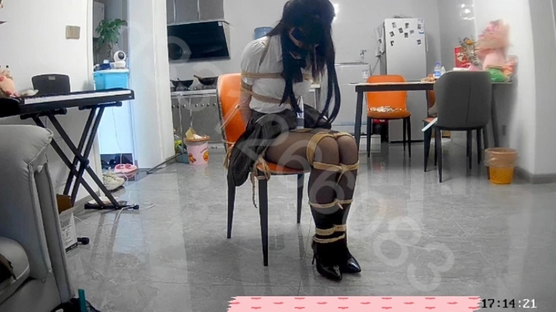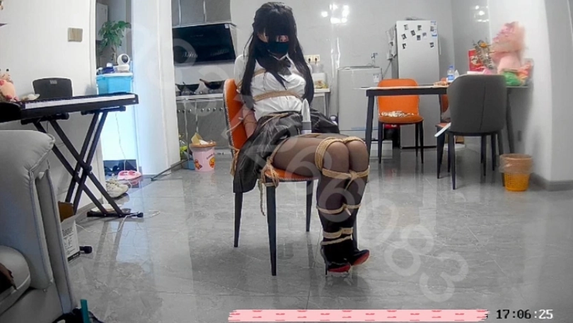 实际放置6个小时左右,3个多小时的监控记录完整奉上。捆得太紧,m挣扎的余地不大,但是已经是到达了崩溃的边缘,不得不承认嘴里塞满棉袜和肌肉胶带的封嘴效果是真的好。最后还有一点很不错的调教内容,口舌,尿浴