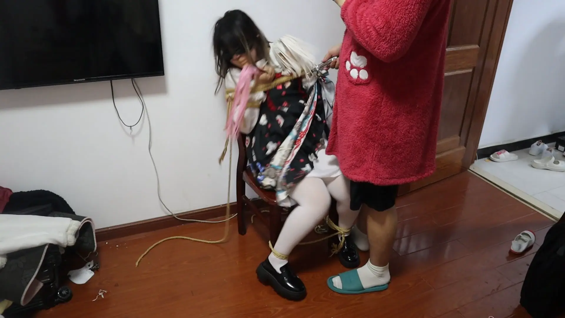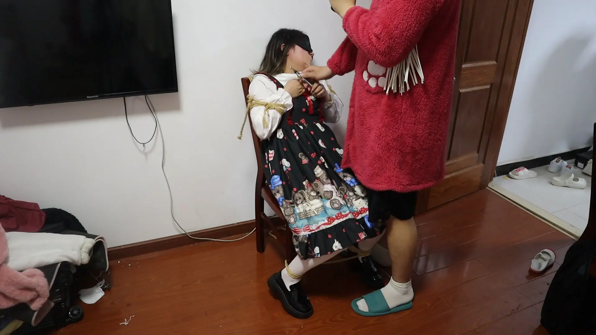 无表演 ,完全室真实调真实体现甜美萝莉女孩vv的恐惧与无助,捆绑在椅子上的女孩微微的发抖,她不知道接下来要经历什么痛苦