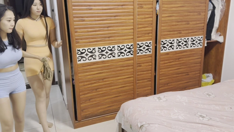 张莹在卧室休息,两女不知合适解开了绳子,进来将张莹绑起来好好玩弄了一番,还抢走了银行卡。张莹男友回来解开了她,二人合力将返回的二女再次迷晕 张莹提议将两女卖掉,不料男友想的不止如此。