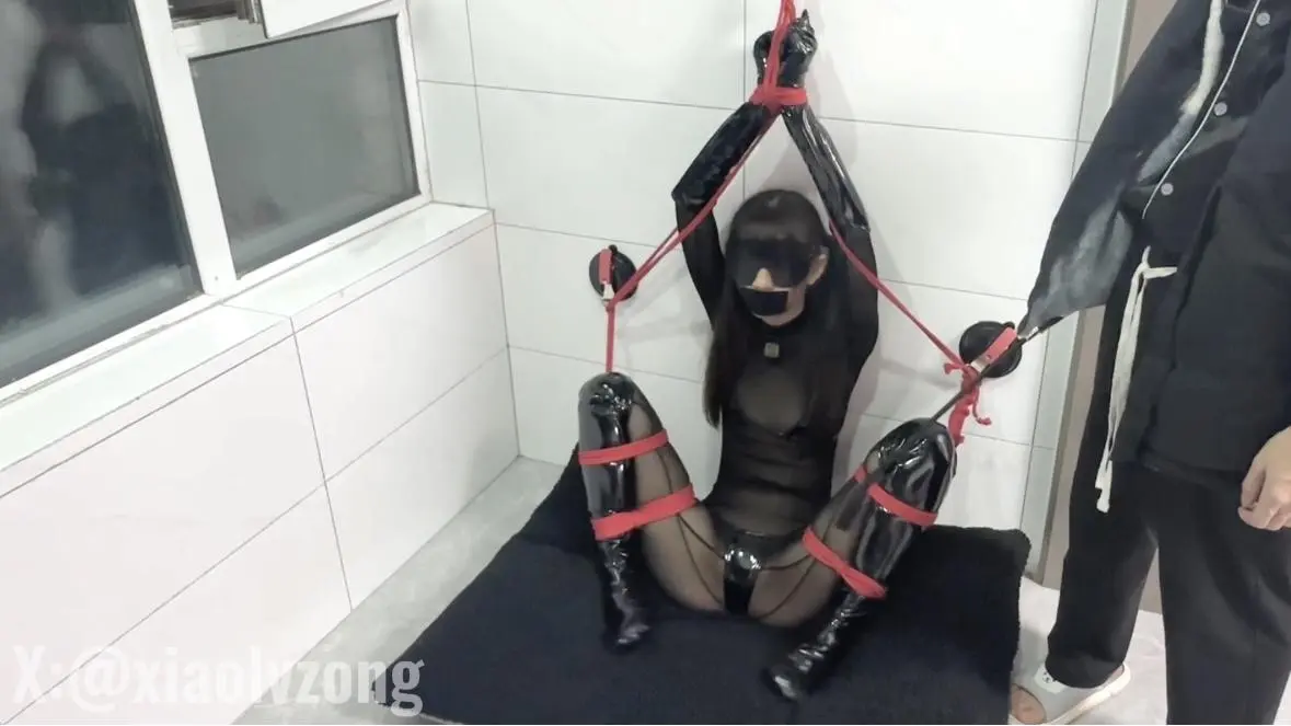 小鱼穿上了连体的黑丝和一个皮质三点式 这次四肢都被分开固定起来 再拿出她害怕的小皮拍 只是摩擦身体她就开始颤抖了 这个皮拍比较疼所以她比较恐惧 后面打的差点疼哭
