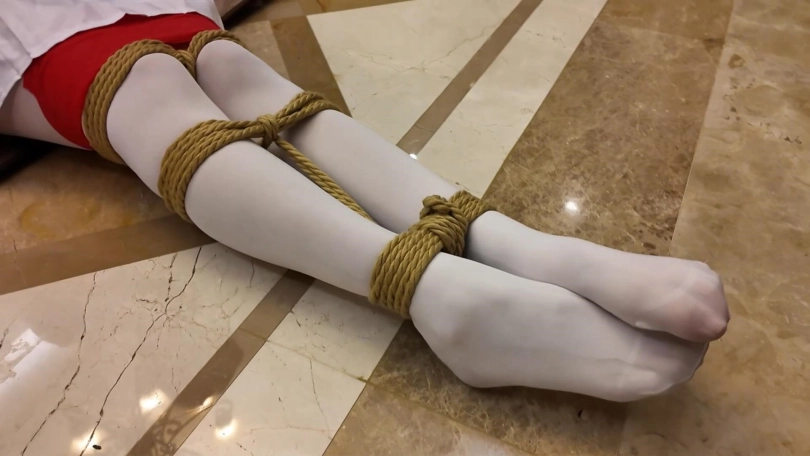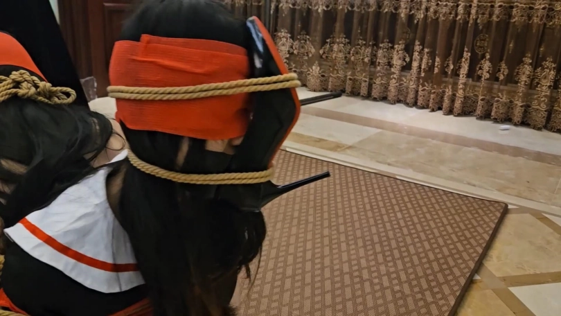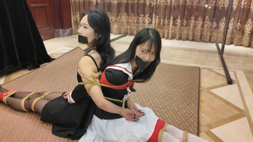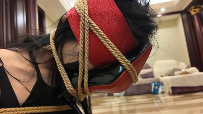 之后再放置拍摄一会。昏迷的富家女回过神来,又因为脸上的高跟鞋十分痛苦。两个人不断地挣扎,试图让身上的绳子松动,然而只是无用功。很快二人就都筋疲力尽,头颅低垂,昏迷过去。