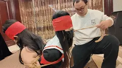 过了一会,男人抱着另一个女生进屋,将她放到地上。男人特意摘下富家女的蒙眼布,让她看清女生的样子。