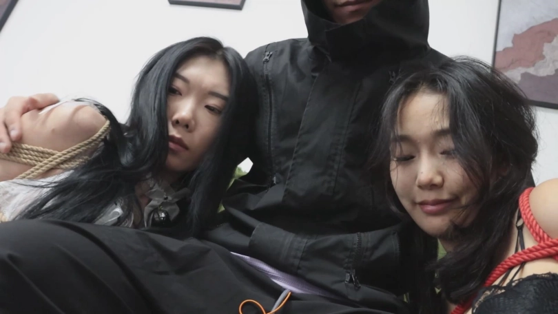 紫萱(2666饰)与思琪(绮梦饰)被带走后将会投入到一场拍卖会中,两人口中塞着彼此的原味袜子,戴着眼罩,在惶恐中被紧紧的绑在一起,此时主持人的声音响起:各位大老爷看这边,货真价实的女大学生,而且两个人关系特别好,听说是大学室友呢。请看,她们两个从被送到我手里以后就再没有换过袜子,此刻她们的嘴里塞得居然是对方的袜子,而且是她们自己要求的哦!