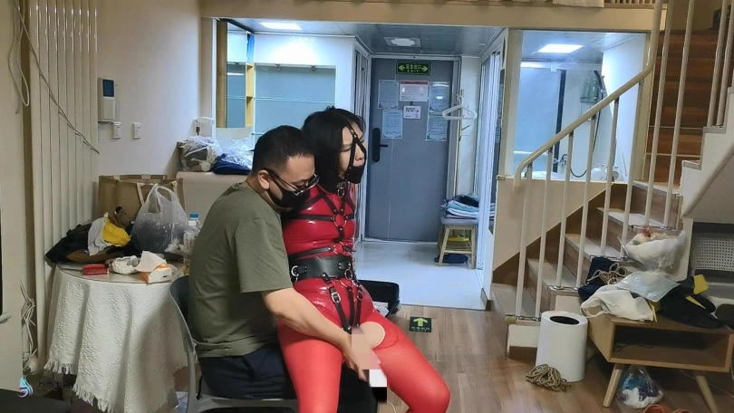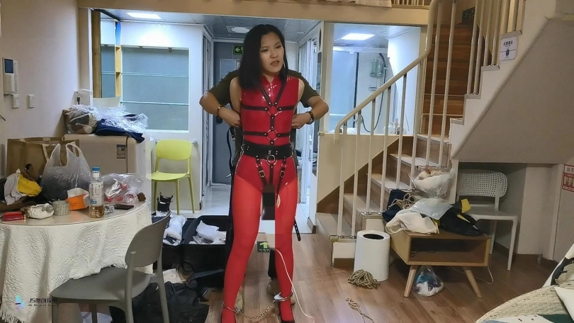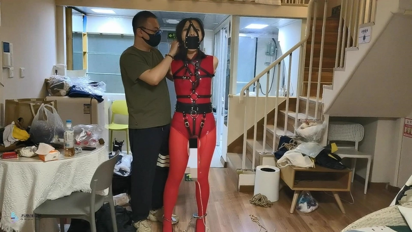 › 【JS】【欢娜】《红与黑》皮革束缚马具型口塞蒙眼脚铐棒棒刺激