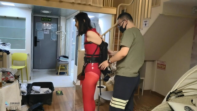 【JS】【欢娜】《红与黑》皮革束缚马具型口塞蒙眼脚铐棒棒刺激