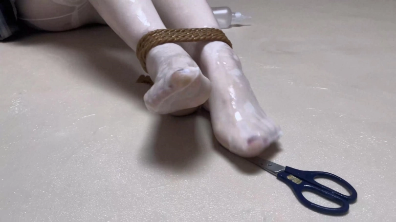美女奋力向她朋友求救,结果脚踝又被捆绑了,就在她使出全身力气就要碰到朋友时,朋友却起身离开了。而她唯一获救的希望只有一把剪刀,而她双层丝袜包裹加上粘液的双脚究竟能不能使用剪刀逃出生天?而更多的危机再次接踵而至~