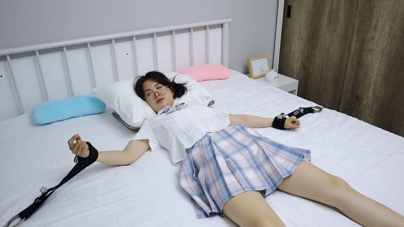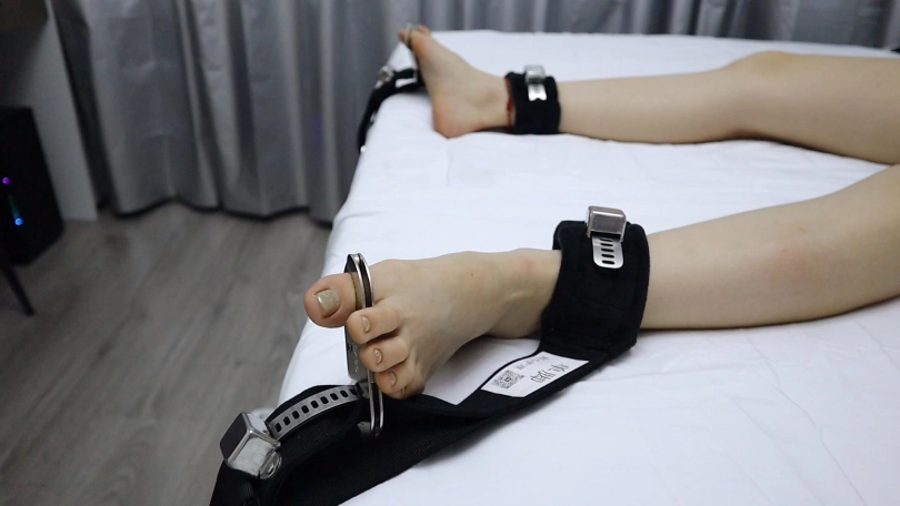 › 【趾间艺束】萌妹子汤圆家中被绑架 绑带 木枷 吊铐折磨 挠脚挠全身TK 手铐脚铐脚趾铐