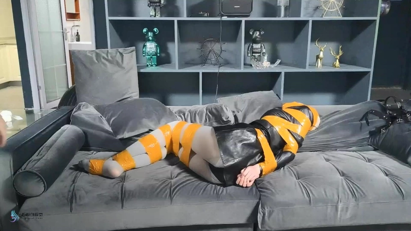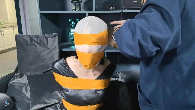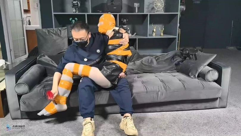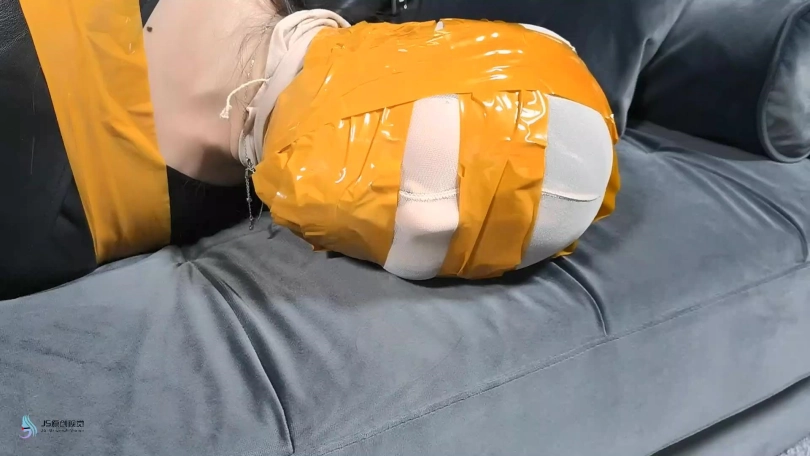 › 【JS】【欣妍】灰色胶带捆绑丝袜堵嘴套头蒙眼TK放置