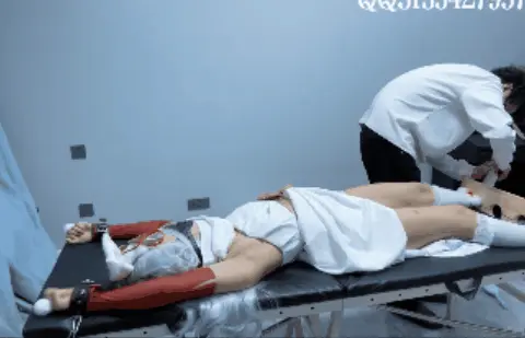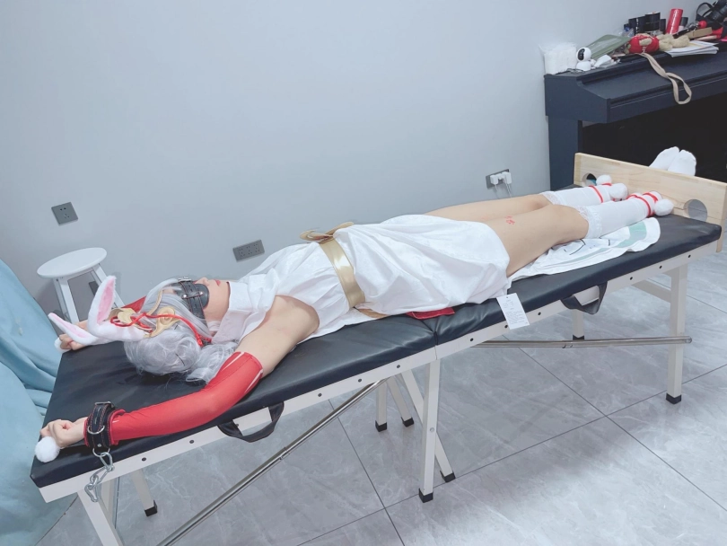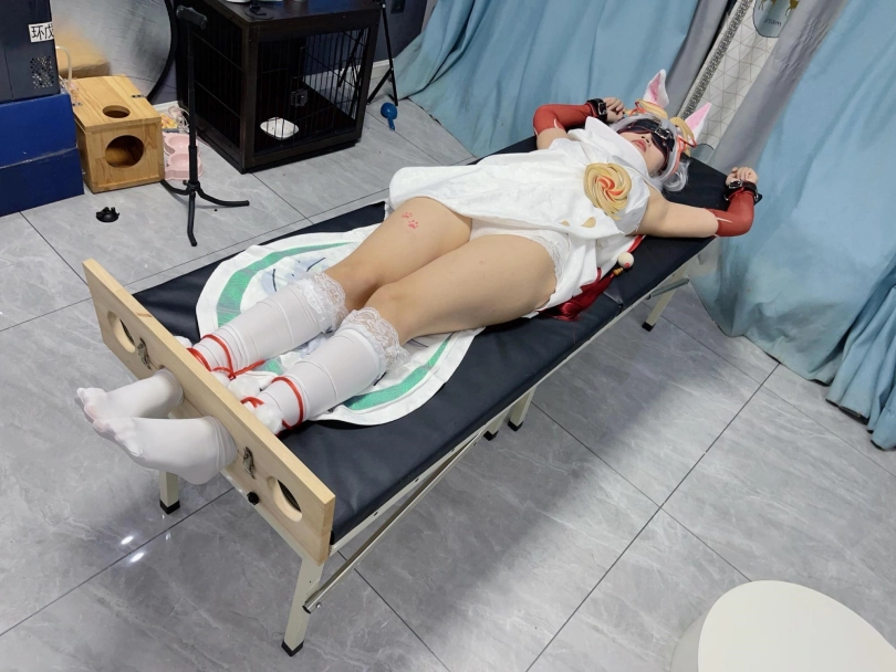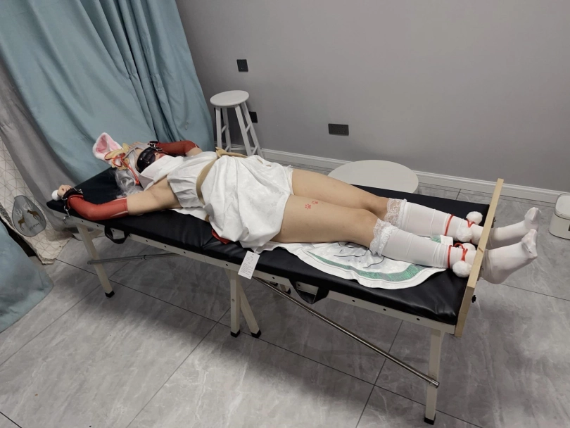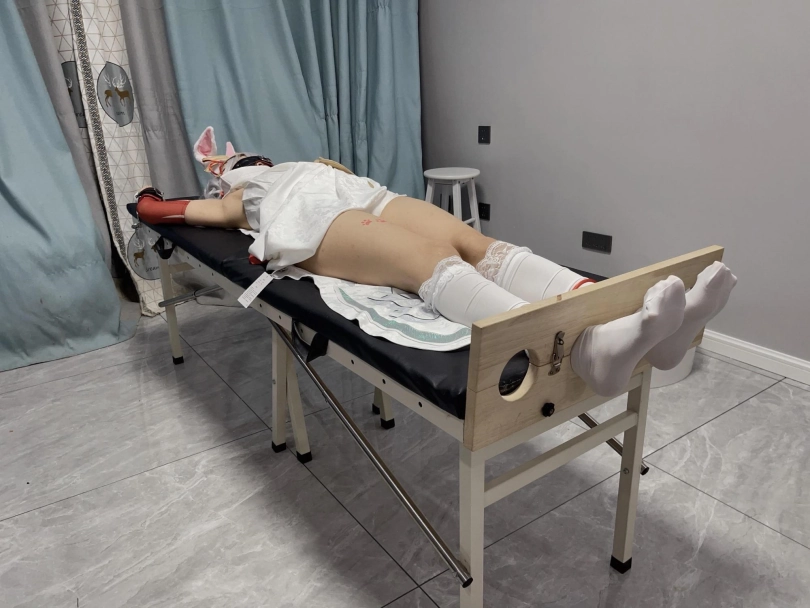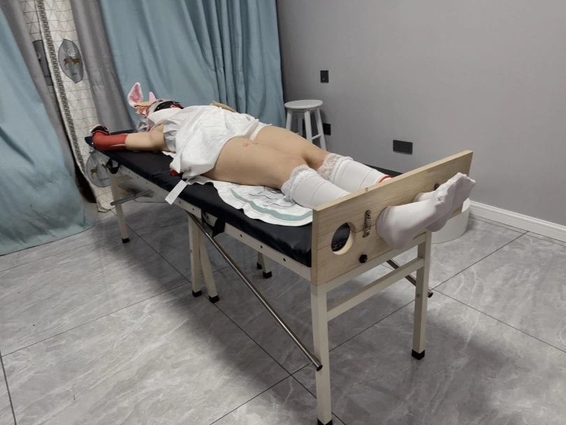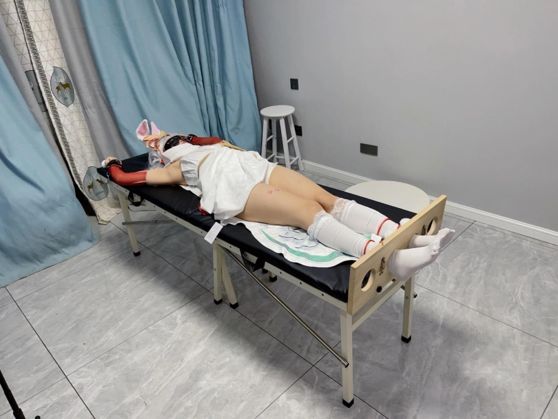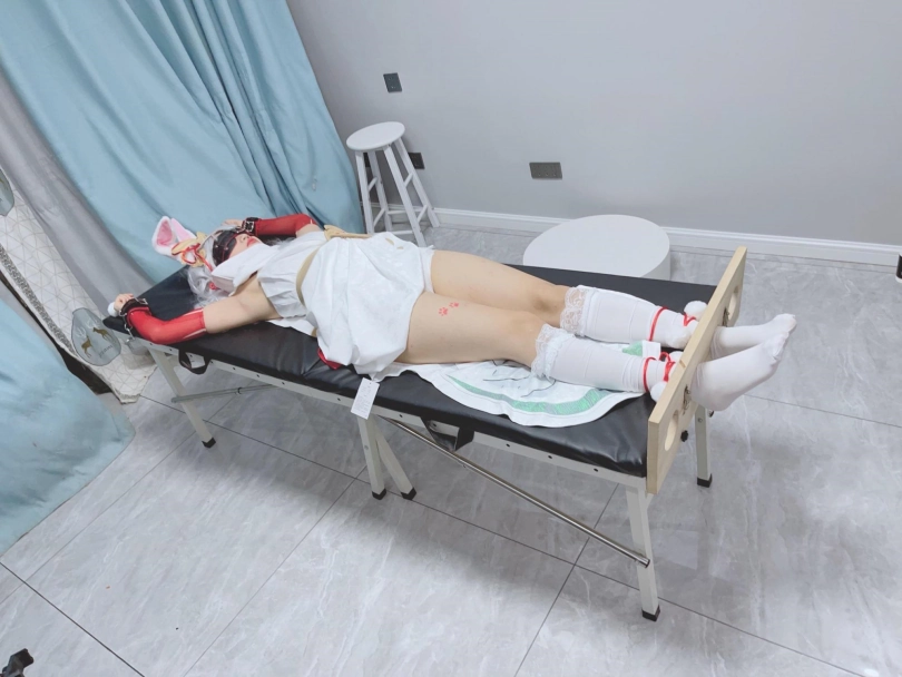 糖糖实在太怕痒了!!!被挠脚底就用两只白丝小脚互相遮掩,于是我就把双脚分开固定,让两只脚底无法互相遮挡。挠腋下的时候一直用手抓我的裤脚企图能延缓我的挠痒,但这一切都是徒劳的~有一次甚至把手腕从皮铐中挣脱出来了,不过没关系,我会狠狠压住她的手腕,把皮革手铐收到最紧,无论怎么挣扎都是徒劳的,糖糖拼命恐惧求饶“太紧了太紧了”..视频为证,糖糖挣扎到固定刑床的螺丝都脱落了!!!!