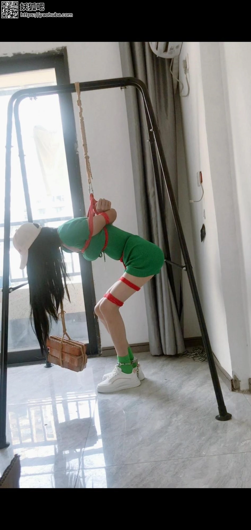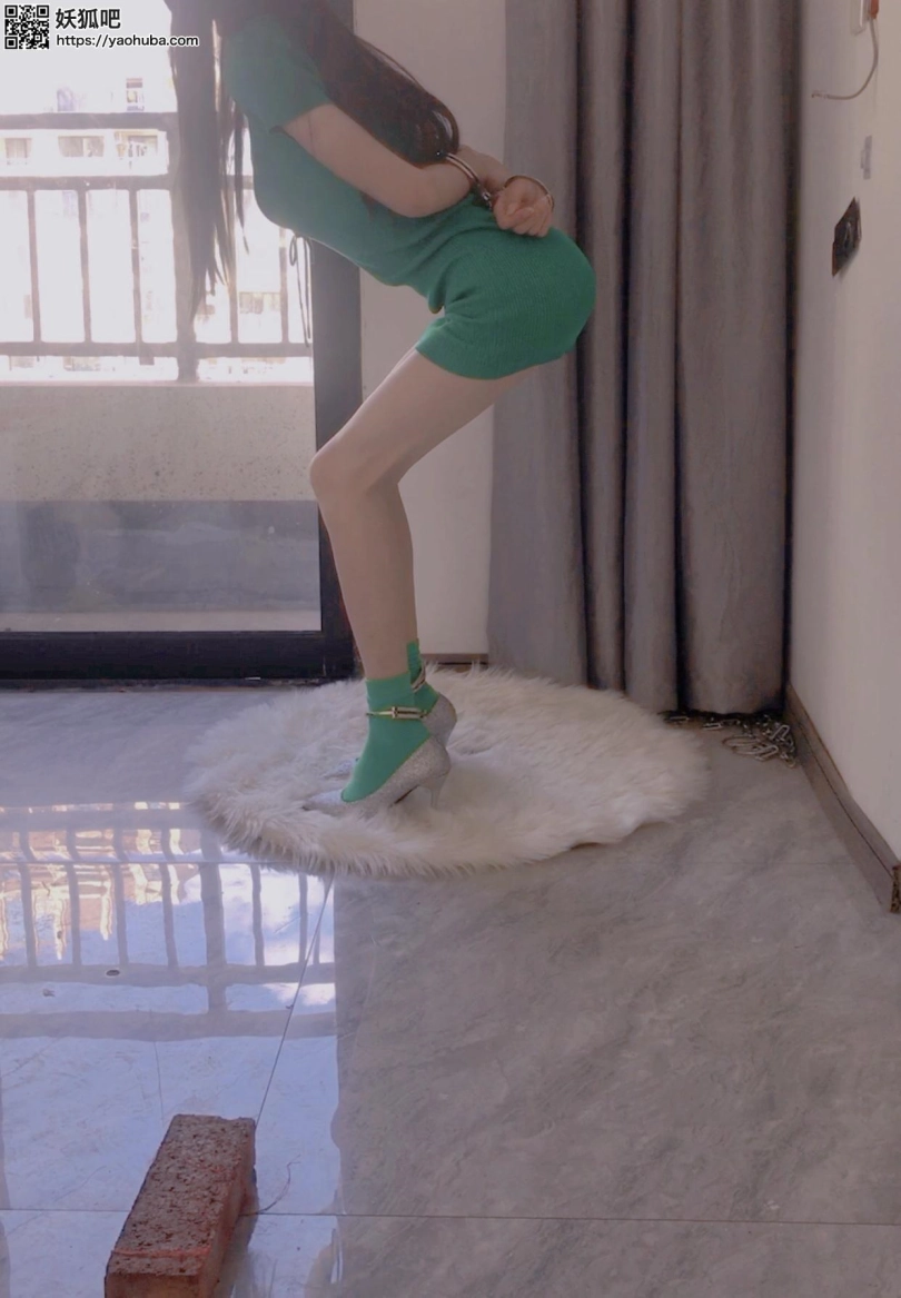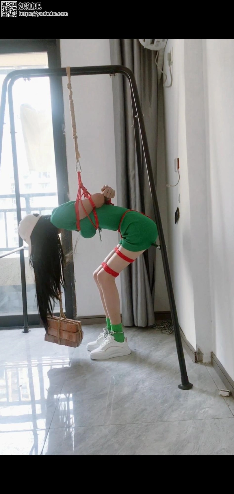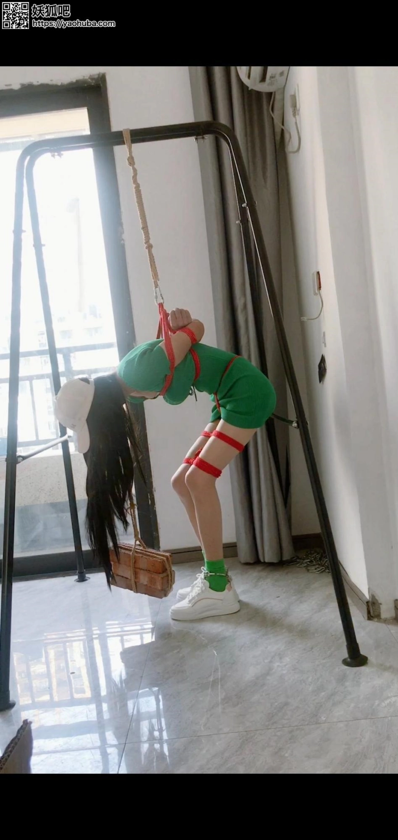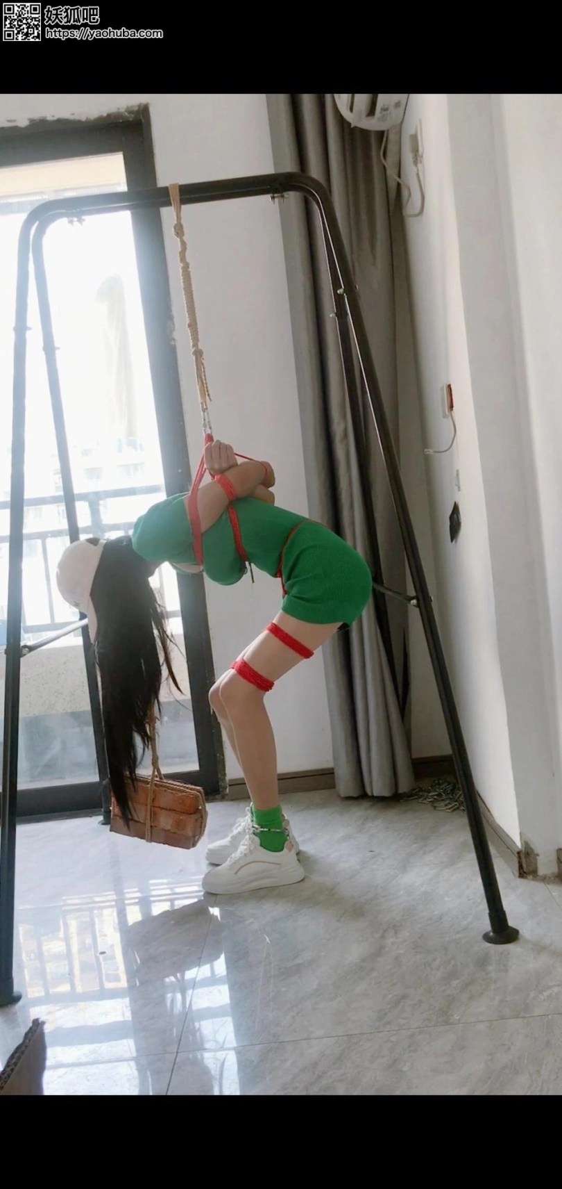 嘿嘿!那两张照片是自己照下来做头像的,两张都挺喜欢的,就是不知道用哪张做头像好,感觉棉袜配高跟鞋还有另一种美了,哈哈~有时间了也想好好的折腾一下,差不多一个月没有玩过了,这次还是玩了一下上次把自己手臂差点吊伤的玩法,这次买的红绳子比较硬,它不会像上次买的绳子那样柔软,会慢慢收紧,随着时间的流逝,会越来越紧导致受力点完全落在手臂,这次收紧的慢一点,虽然难受还是一样难受啦,更何况还要承受脖子砖块的重量,又是一次难忘的经历,其实之前一直穿的是丝袜高跟鞋,记得上次有个小伙伴说能不能拍一期帆布鞋,这次就拍棉袜帆布鞋吧,哈哈这一身绿油油的,其实我是比较喜欢绿色的,绿色也是一种非常漂亮的颜色,看着就像春天一样,让人能够心情舒畅,也代表着健康,最后那段是房子的一个小阳台,不过住在八楼这两天风也很大,现在天气也转凉了,吹着还是有些凉飕飕的~最后一段外面在装修,所以噪声很大~