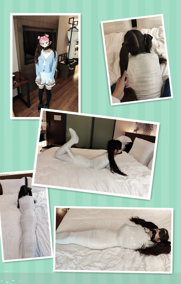 拉扯双马尾 强制抬头 人形胶带木乃伊的挣扎