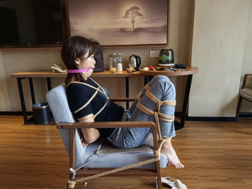 给绑了个简单文文日式加M腿,戴上口球后可以看出来是有点害羞的,手脚都被绑着固定在凳子上,又不能遮挡怕口水流,还是挺有意思的。