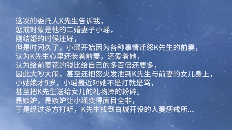 小瑶通过小三上位取代正妻后,整天跟男主人吵闹,处处要跟原配妻子比较,还对原配所生的女儿经常打骂,归根结底是嫉妒心在作祟。男主人终于有一天忍不了了,拨通了白城“人妻惩戒所”的电话...
