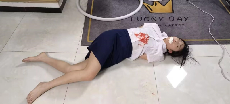 被刺造成的流血,从现场判断应是有第三人在场,J 方请到了著名侦探许探长与现场模拟专