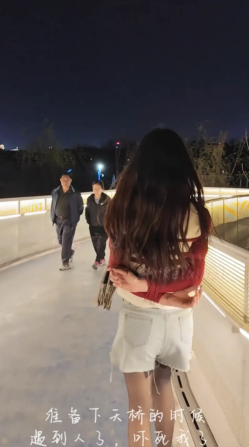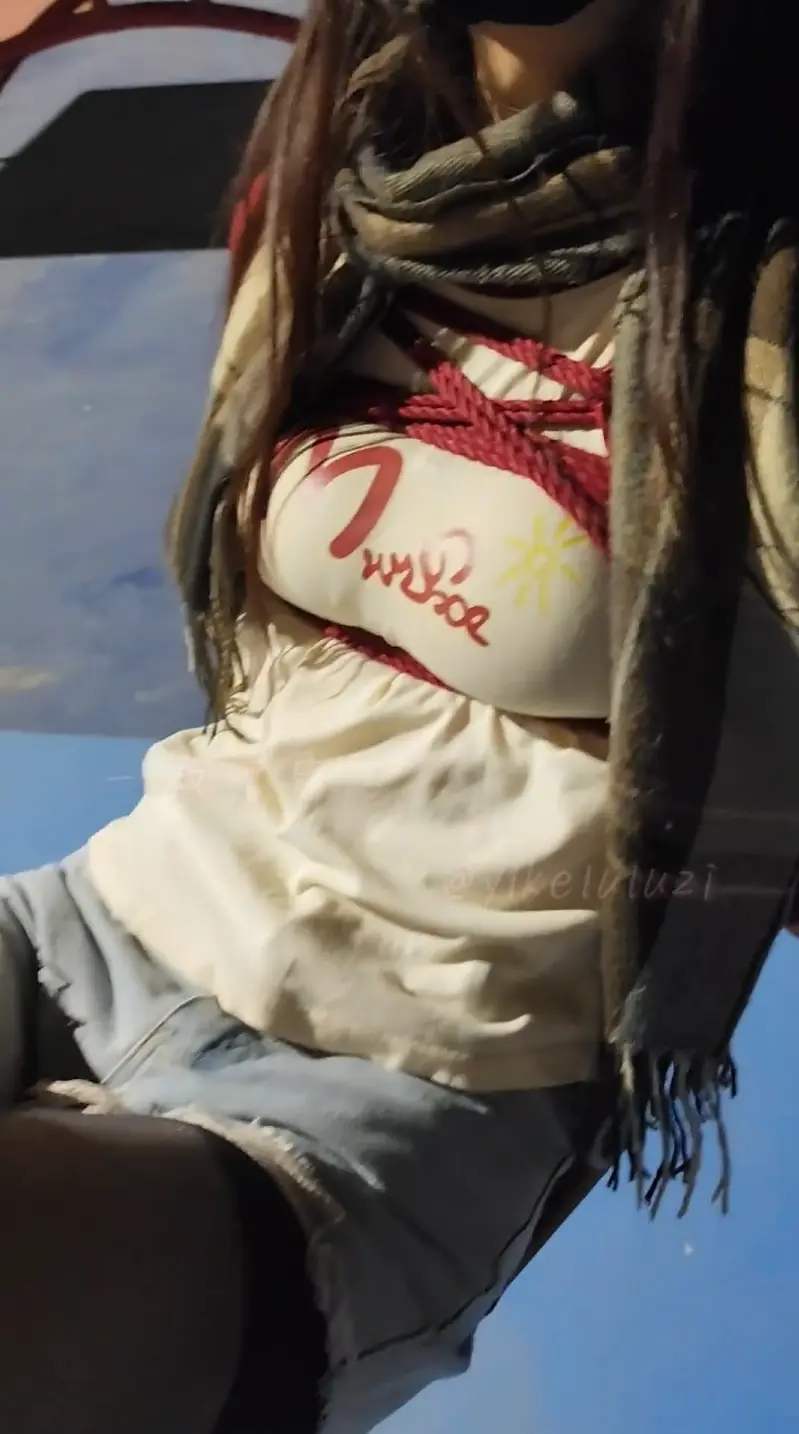 为了让露露体验户外被捆绑的感觉,在人多的傍晚给露露绑成日式捆绑,全程不披衣服被押送到户外。黑丝热裤本身就惹人注意,还要被捆绑着到公园散步,期间多次被路人盯着看,最后还被打了招呼慌忙逃跑。