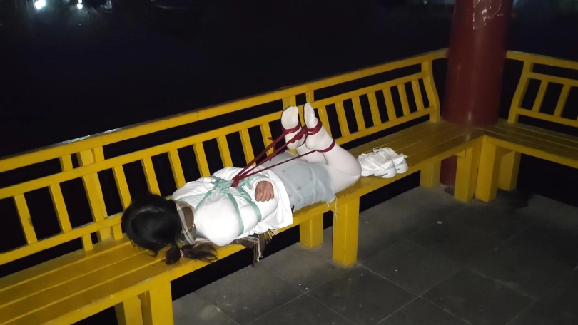 之后给露露在公园长椅绑了驷马缚,静静躺在那里也很无助