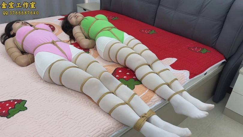 两姐妹来参加舞蹈比赛,不料确实黑心老板娘设下的陷阱,老板娘在屋内放上迷药,将两名迷晕后绑起来玩弄,装袋运走。