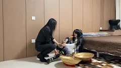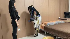黑衣女是个拥有穿越能力的人,她穿梭在各个时空,偷走了各种宝物,并且纳为己用,其中就包括恍金绳和金钵。一次意外的穿越让她穿越到了上官婉儿的府邸,并且顶上了婉儿的武器,两人便开打,婉儿明显不是对手,先是被恍金绳捆住,虽然是挣脱了,但是这是在反派的故意安排下才让她逃脱的,随后反派使用重压力,将婉儿重重的压倒在了地上,不服输的婉儿又与之决斗,奈何被吸入金钵里,脚快要化了。大意的黑衣女以为自己赢了,便打开了金钵,发现婉儿只是奄奄一息。随后便用金钵释放闪电电击婉儿,又用金钵夹住了婉儿的脚,疼痛万分的婉儿最后屈服,被黑衣女脱靴脱袜,做了自己的奴隶,让婉儿给自己脱靴揉脚,可怜的婉儿服从之后还是没有被放过,被捆起来之后又被装进金钵里。