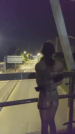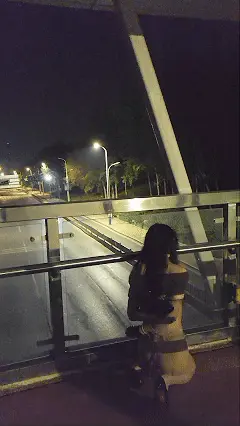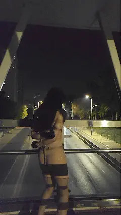 随时都有行车经过,一览露露的风光。全身紧紧捆绑的露露脚下的高跟鞋高达10CM,从未穿过高跟鞋的露露感到痛不欲生,是一种虐足的体验,随后在天桥上因为被肛钩顶的太舒服下跪,被电击到走不动路直接瘫倒在天桥上,来往的车辆稍加注意便注意到一个全裸的少女全身捆绑的躺在地上抽搐————