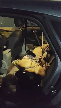 最后的露露选择脱掉碍事的高跟,赤脚(或者说只穿丝袜)跑在小路上,白色灯光下是个蹦跶的全裸着被捆绑的少女( 在行进一段路之后和正在值班的保安对视,反应过来后连忙逃跑!然而被发现了就要收到惩罚~ 回到车上的露露直接被驷马攒蹄绑在后座上,绳子吊着郊狼电击放置!
