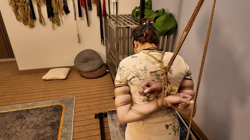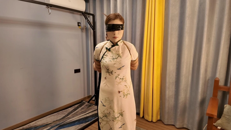 接神秘客户电话:预约佳佳定制体验、要求全程蒙眼、不许看到客户面容,旗袍五花捆绑,静电胶带蒙眼,带口球半吊跪在房间等候、体验过程全程称呼主人、体验内容,捆绑,遛狗、鞭打、羞辱、抚摸、口舌、骑乘