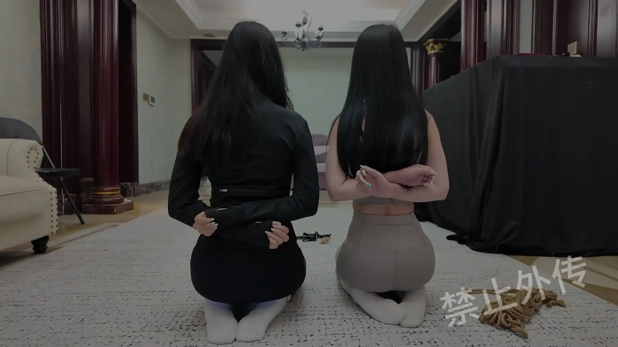 芷溪被很严厉的驷马捆绑起来后,被独自留在房间里面挣扎,无法逃脱。这时芷溪的闺蜜佳雯来找芷溪,发现被紧紧捆绑着的芷溪,急忙上去问发生了什么事。在得知事情的经过后,她先是取笑玩弄了芷溪一番,随后告诉她,自己想一起接受培训,为她报仇。于是,两人均被教练捆绑起来,在紧缚中全力寻找逃脱的机会。