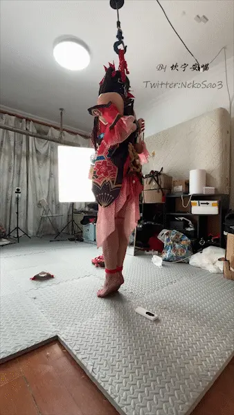 [追求极致欢愉的花火已经不满足于普通的GC了,她决定玩点刺激的——她把自己的双腿并着牢牢捆在了一起——连大脚趾也不放过——接着用一根绳子吊住自己的脖子,把双手和脖子的吊绳铐在了一起。随着遥控器的按动,她的身体逐渐被吊了起来,直到只有脚尖踮地,而承受她全身重量的只有一根脖子上的绳子……随着她用力一甩,遥控器落到地上、彻底脱离了她的掌控,也意味着在定时结束之前她必须要忍受着这一切,忍受着[X_X]的玩具的猛烈刺激的同时尽力踮着脚避免自己[X_X],而她所不知道的是,拉高的吊绳同时也把她的双手在背后吊得更高了,高得让她几乎没有活动的余地……就算她想要求救也为时已晚了,因为她还把自己的眼睛蒙住、嘴巴堵住了,她只能在偏僻无人的小黑屋里永无止境地“享受“着这一切的欢愉……]