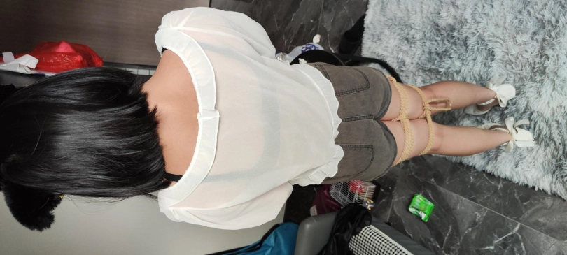 五花大绑 来回下蹲转圈展示 漂亮女模特 扎带超级欧式并肘 手铐超紧苏秦背剑
