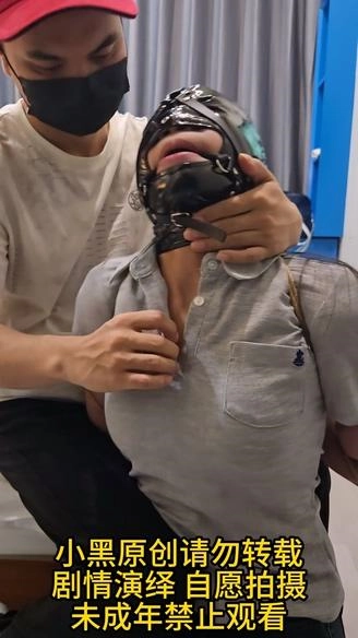 【小黑】五花后高手缚,马具口球堵嘴,玩弄挣扎。